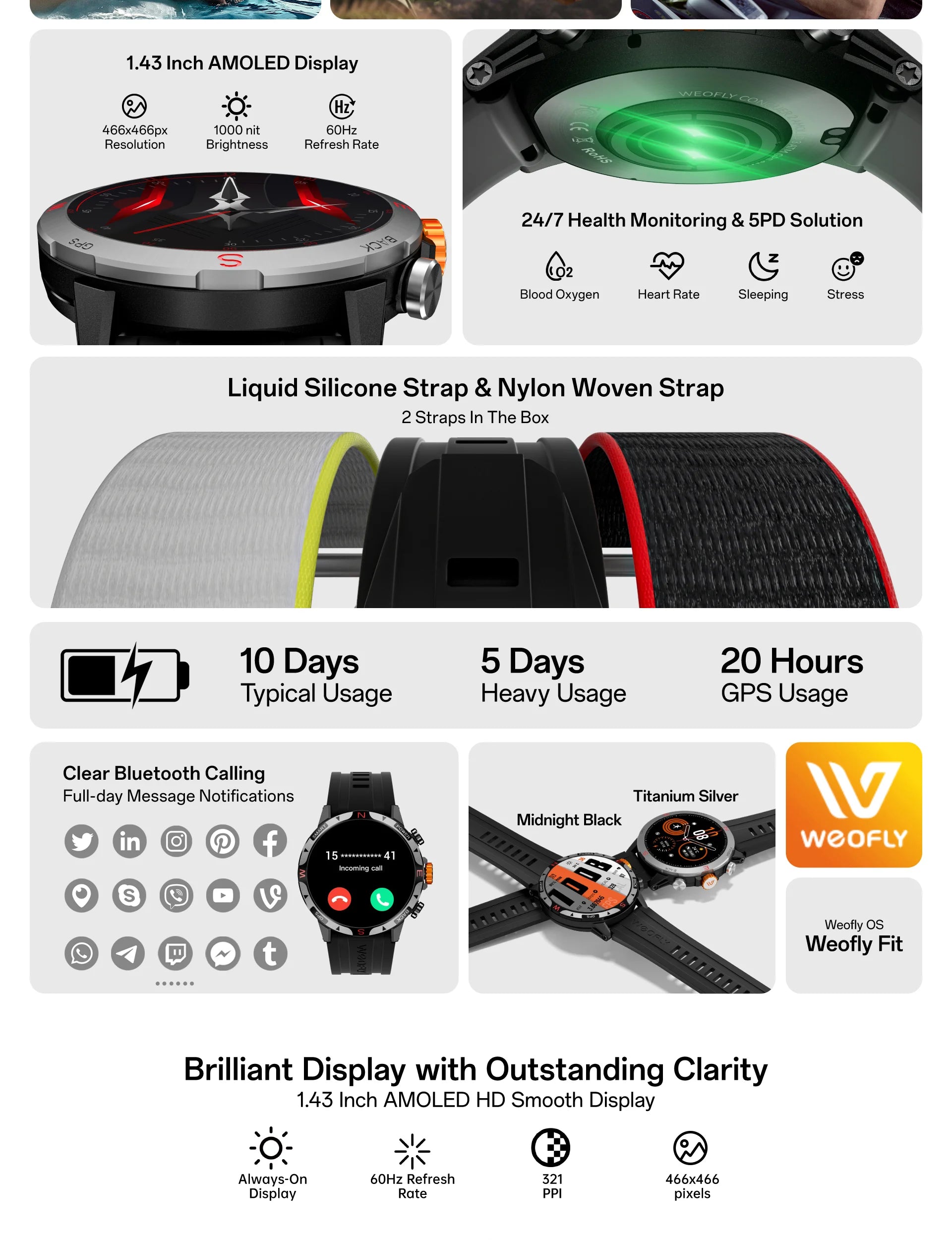- 1.43" AMOLED Bright AOD Display