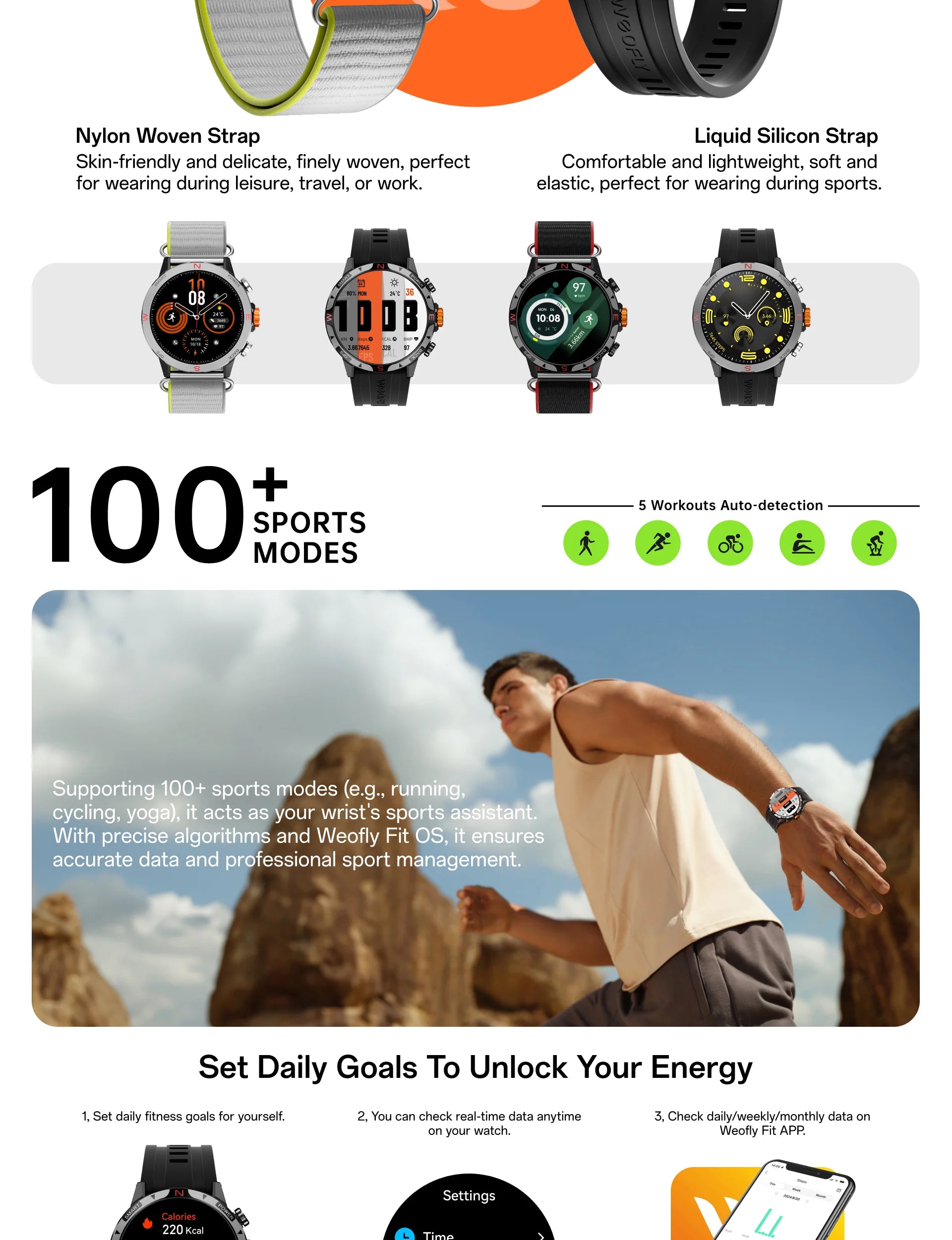 - Workouts Smart Recognition & 100+ Professonal Sports Modes