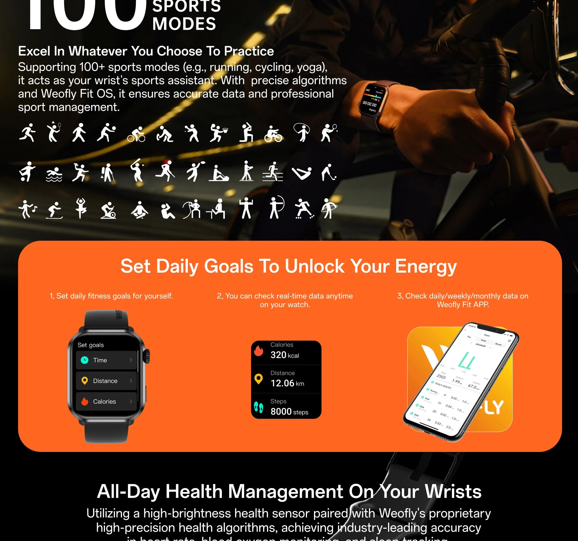 - 100+ Sports Modes & 24/7 Health Monitoring