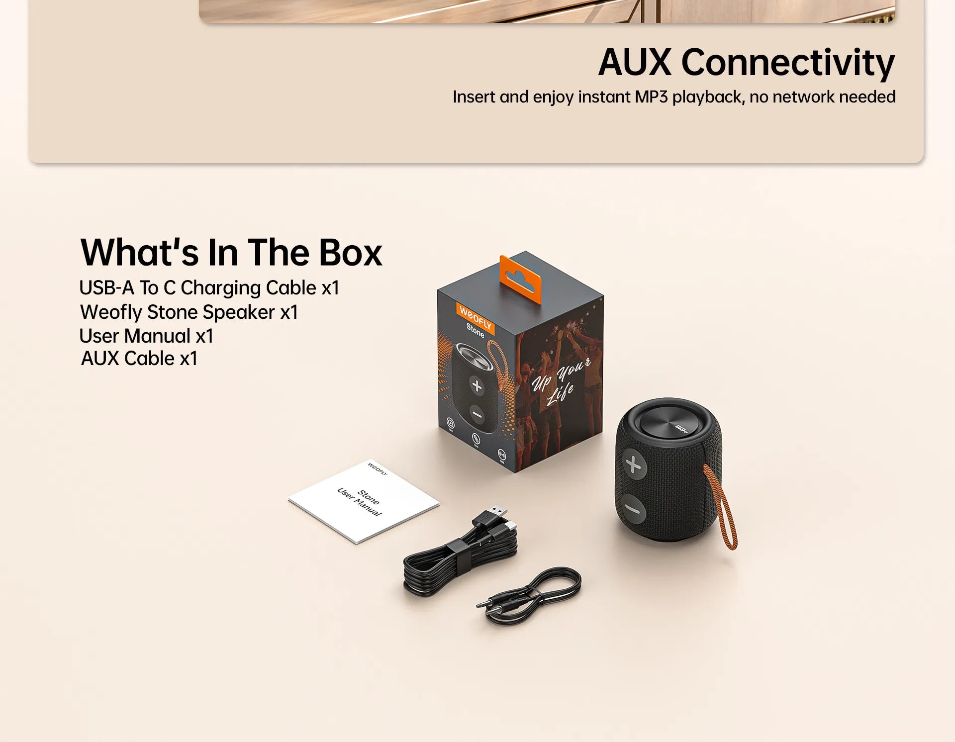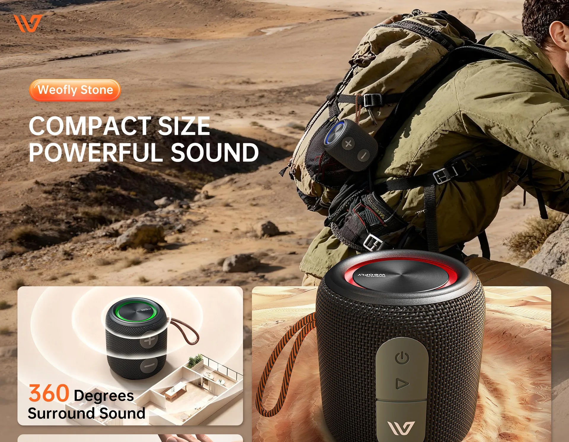 - 6W Deep Bass: Weofly Stone speaker uses 52mm dynamic driver and metal bass cone to deliver rich, deep bass, making you feel like you're at a live music event.