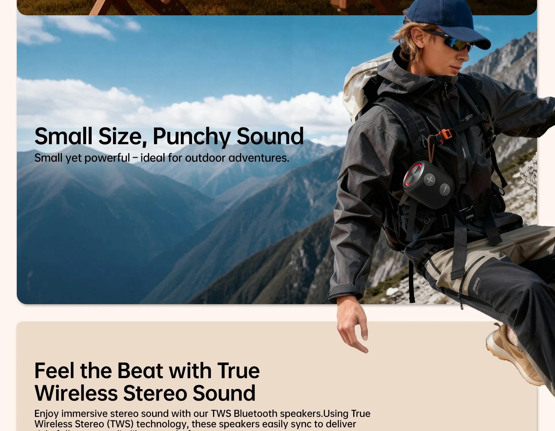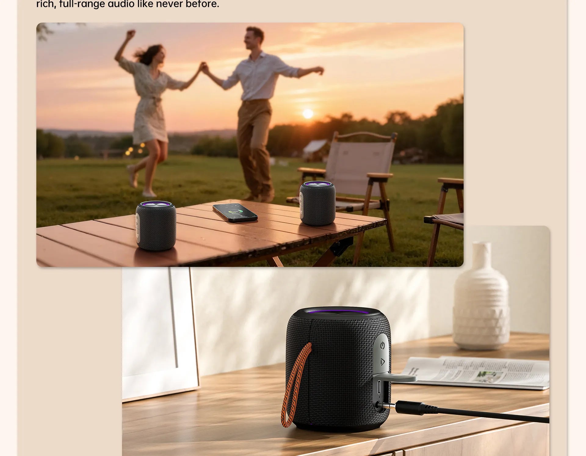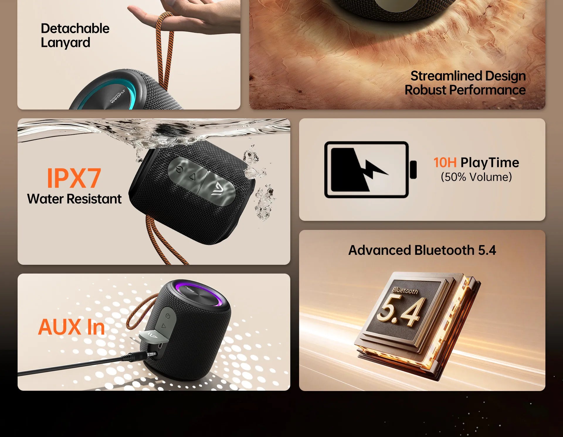 - Bluetooth 5.4 Wide Compatibility: The outdoor wireless speaker uses Bluetooth 5.4 for quick, stable connections and pairs with most Bluetooth devices like phones, TVs, tablets, and laptops.