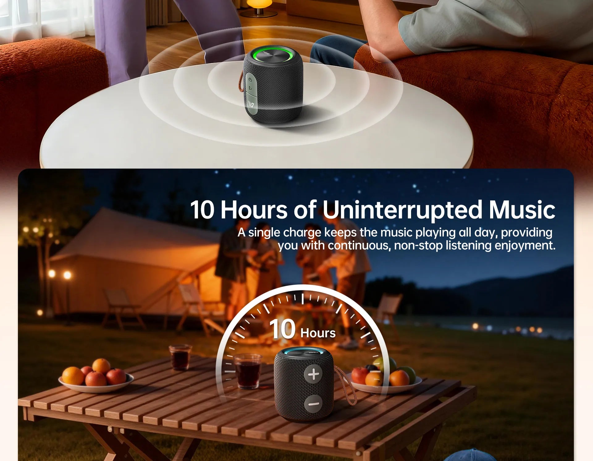 - IPX7 Waterproof Portable: The speaker is IPX7 rated, resistant to water, dust, and mud. It's perfect for outdoor activities and comes with a tough, flexible design and portable strap, making it great for home or travel. A perfect gift idea.
